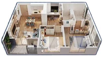 Các căn hộ Masteri Đan Phượng được thiết kế theo triết lý biophilic – sống giao hòa cùng thiên nhiên, tận dụng tối đa ánh sáng và gió trời, kết hợp cùng nội thất cao cấp, hành lang rộng rãi có điều hòa, tạo nên không gian sống thông minh, tinh tế và giàu cảm xúc. Từng chi tiết được chăm chút để mang đến sự thư thái, tái tạo năng lượng và cân bằng thân – tâm – trí cho cư dân.