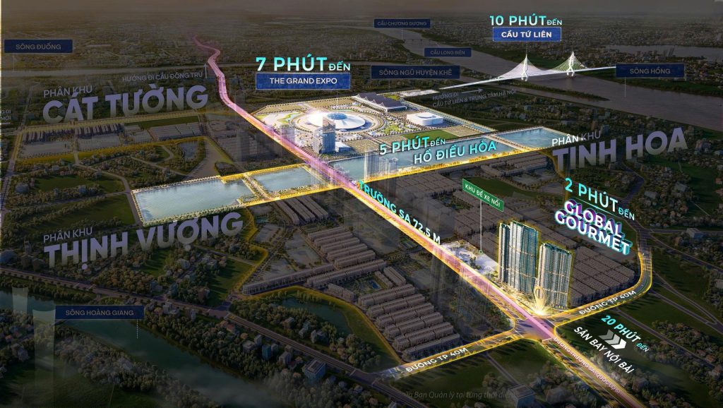 • 10 phút tới Hồ Tây qua trục Tây Thăng Long – đại lộ rộng 60m chạy xuyên suốt dự án.